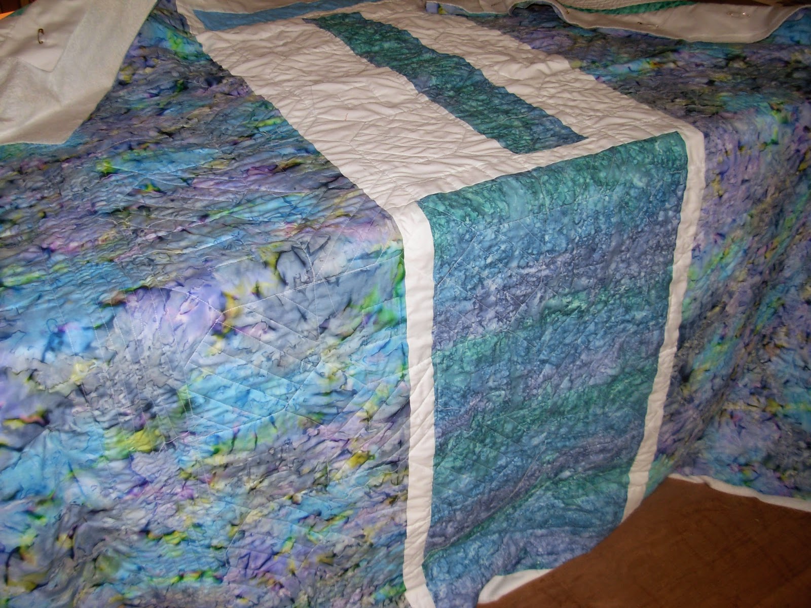 See my bubbles? I have 2 more borders of that then another border in white and the flimsy will be done. I am looking forward to quilting this one even. If you would like to see the quilt made by Vicki visit Quilt Sue at