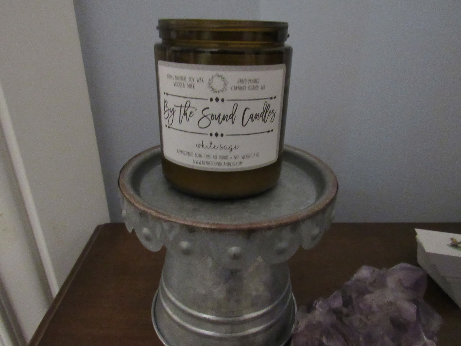 I like this candle that I bought. One of my friends from high school, her daughter started this candle company in Washington. The wicks are made somehow of cedar and so as they burn they give of small crackling sound. I especially like this scent called white sage. It is very clean and reminds me of being in the high desert during the winter.
